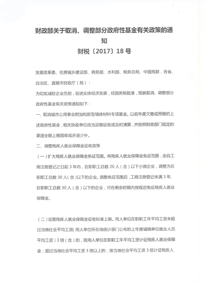 財政部關(guān)于取消、調(diào)整部分政府性基金有關(guān)政策的通知